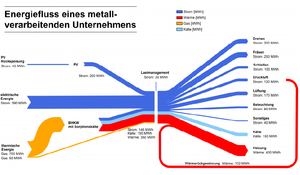 Energiefluss eines metallverarbeitenden Unternehmens