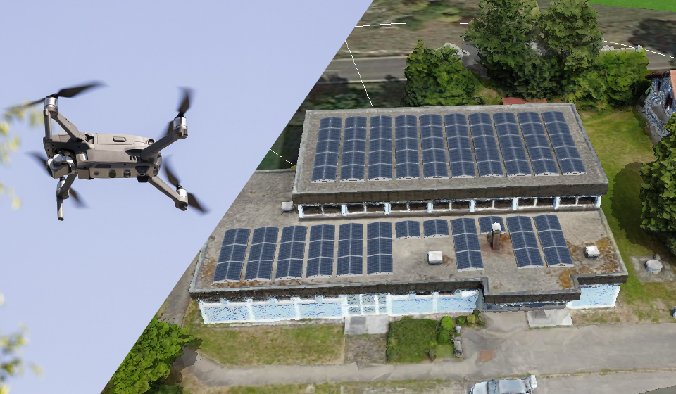Ein Quadrocopter erstellt aus verschiedenen Perspektiven Fotos des Gebäudes. Diese Fotos werden mit einer Fotogrammmetrie-Software abgeglichen um aus Gemeinsamkeiten eine Punktwolke zu erstellen. Die Punktwolke wird in ein 3D-Modell umgerechnet, welches bis auf einige Zentimeter genau die Realität abbildet. Die erfassten Daten und Modelle können anschließend für weitere Simulationen, z.B. für die Dimensionierung von Photovoltaikanlagen, verwendet werden. Klarer Vorteil dieser Drohne ist die Erfassung von allen Objekten wie z.B. Bäumen, diese können so in die Verschattungsanalyse mit einbezogen werden.