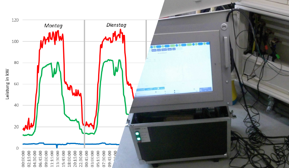 Um den elektrischen Verbrauch einzelner Maschinen oder ganzer Stromkreise zu bestimmen, können wir mit mehreren Kanälen 3-Phasen-Leistungsmessungen durchführen. Über mehrere Tage lässt sich das Lastprofil des Verbrauchers bestimmen und anschließend analysieren.